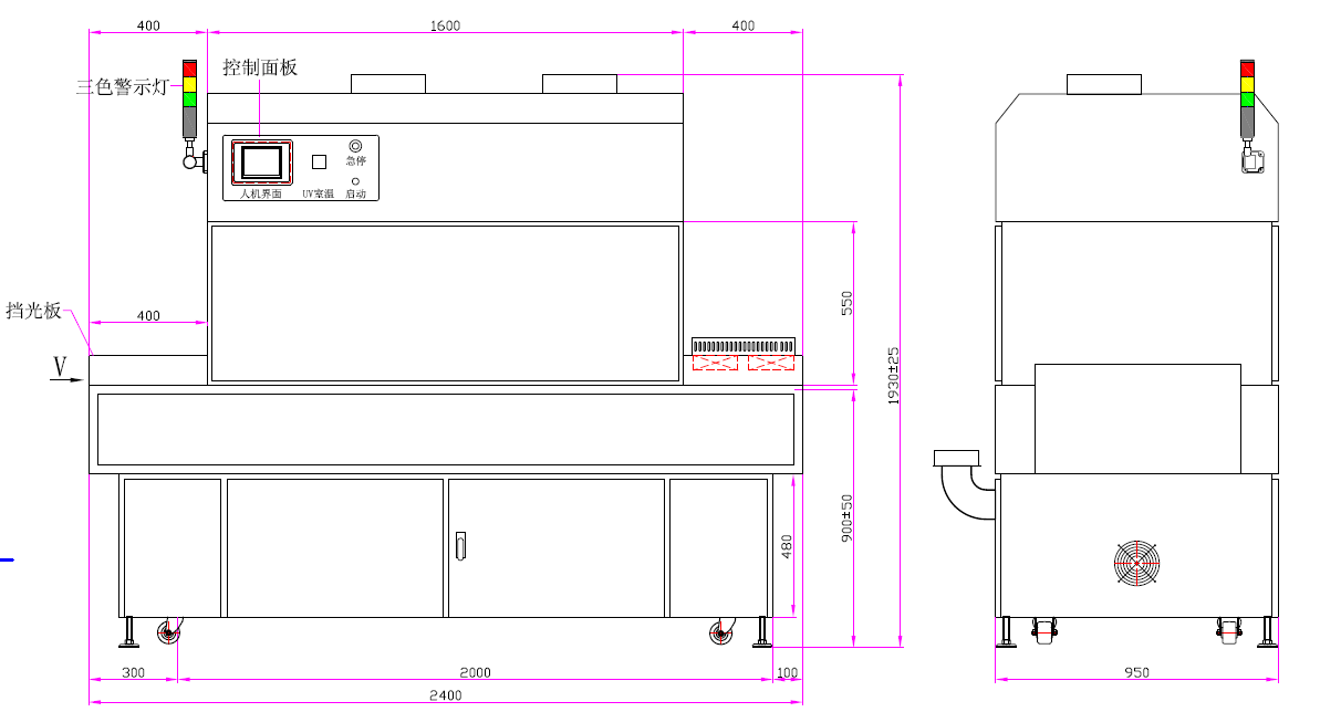 可調(diào)寬窄UV汞燈固化機加上下排風水冷PCB三防漆立式隧道爐